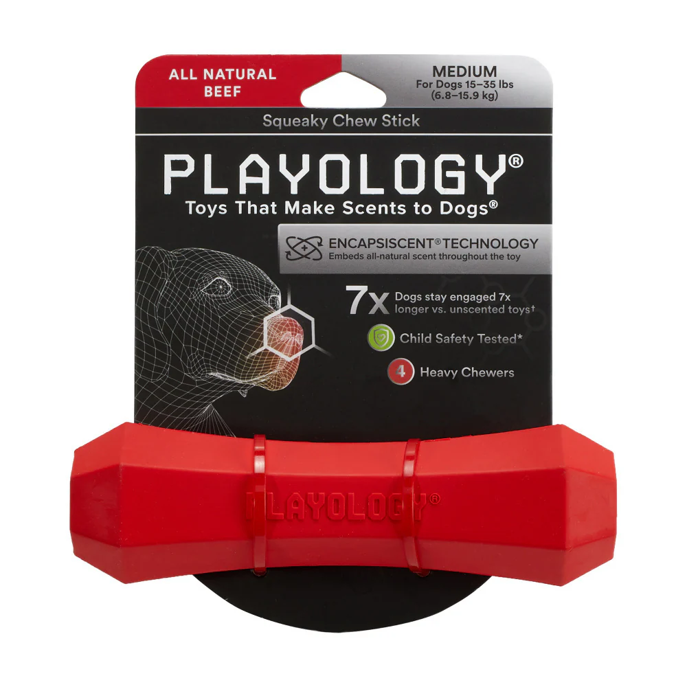 Playology Squeaky Chew Stick Beef Scented Dog Toy
