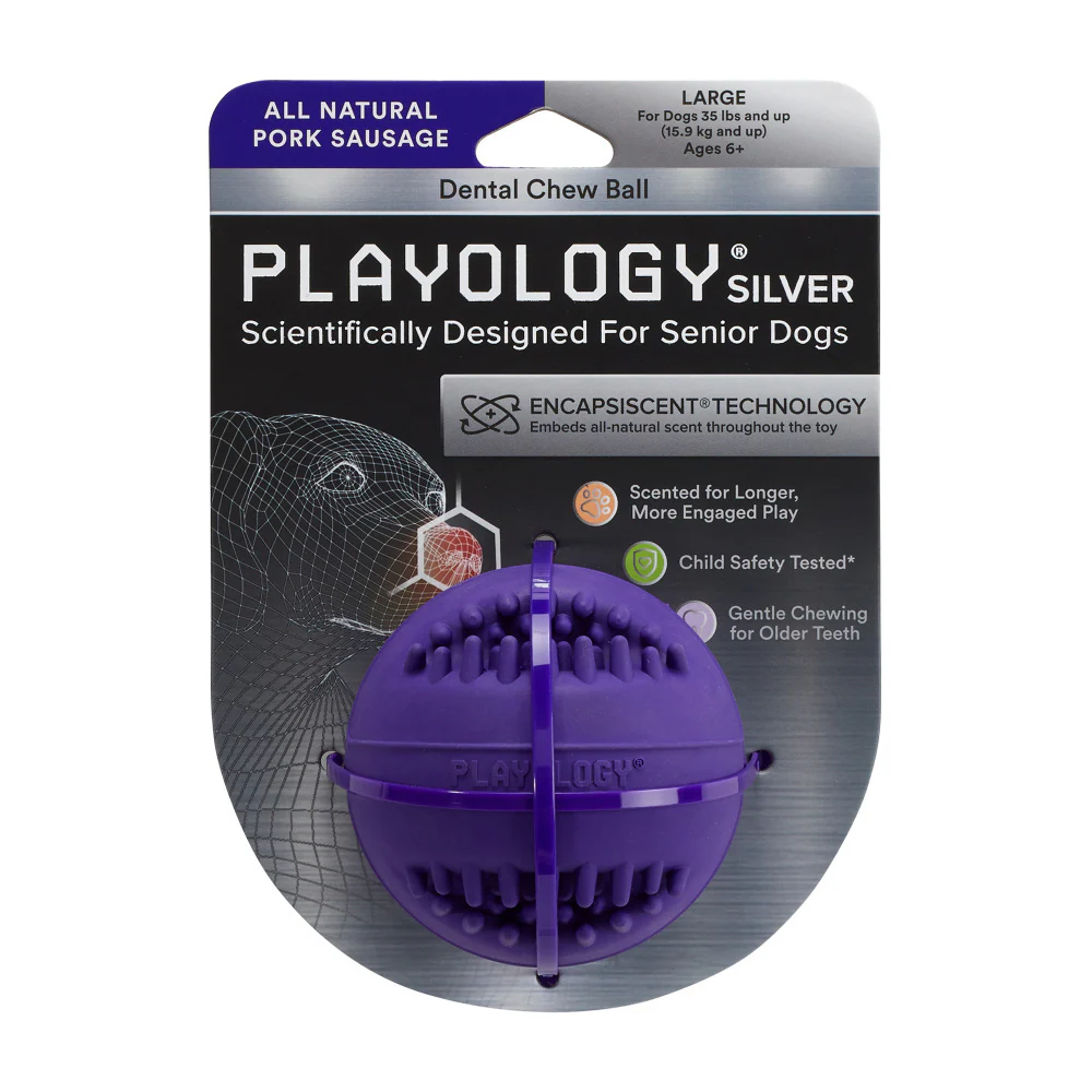 Playology Dental Chew Ball Pork Sausage Scented Dog Toy
