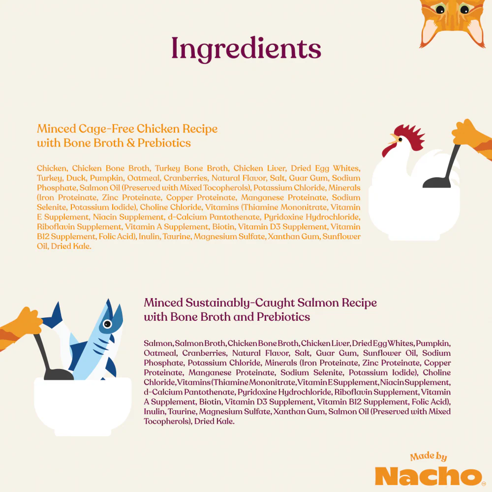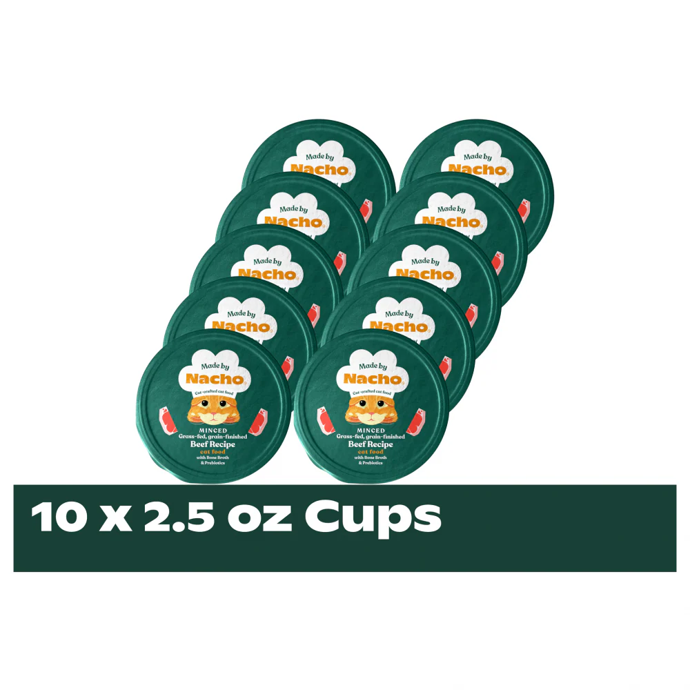 Made By Nacho Minced Grass-Fed, Grain-Finished Beef Recipe Cat Food With Bone Broth And Prebiotics